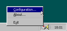 The Configuration menu item brings up the configuration dialog, which is described below. Double-clicking the Hot Key Plus icon also brings up the Configuration dialog.